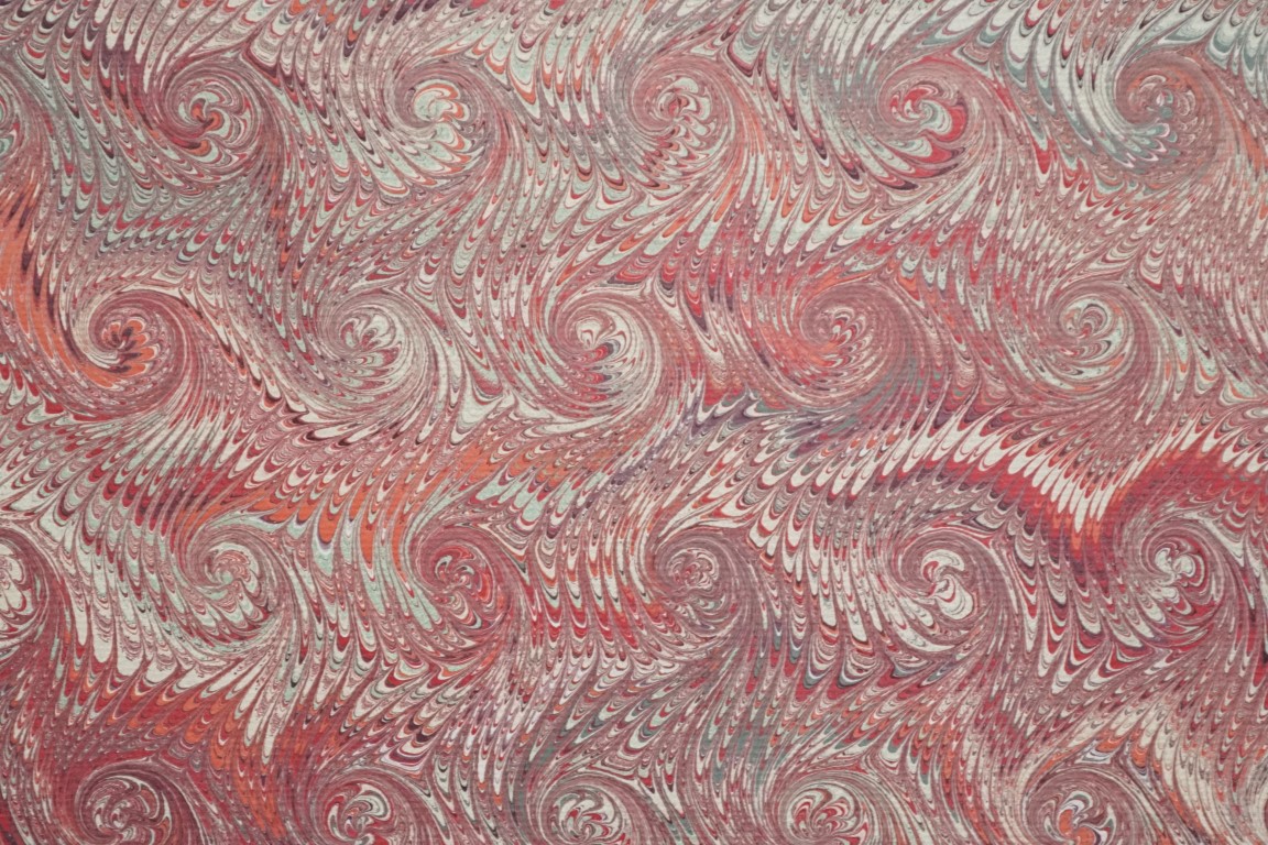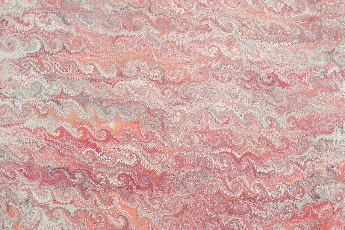 Papier marbré à la main au motif Coquille dans le coloris Rouge