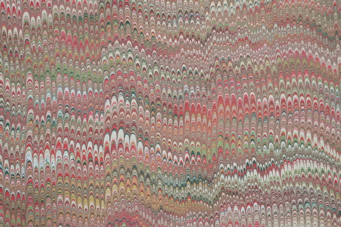 Papier marbré à la main au motif Peigne droit fin dans le coloris Orange kaki