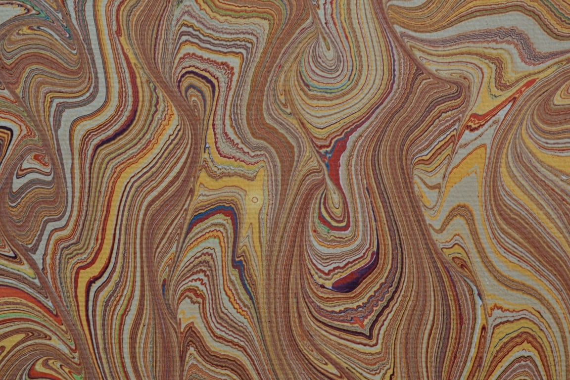 Feuille de papier marbré au motif Remous dans le coloris Orangé